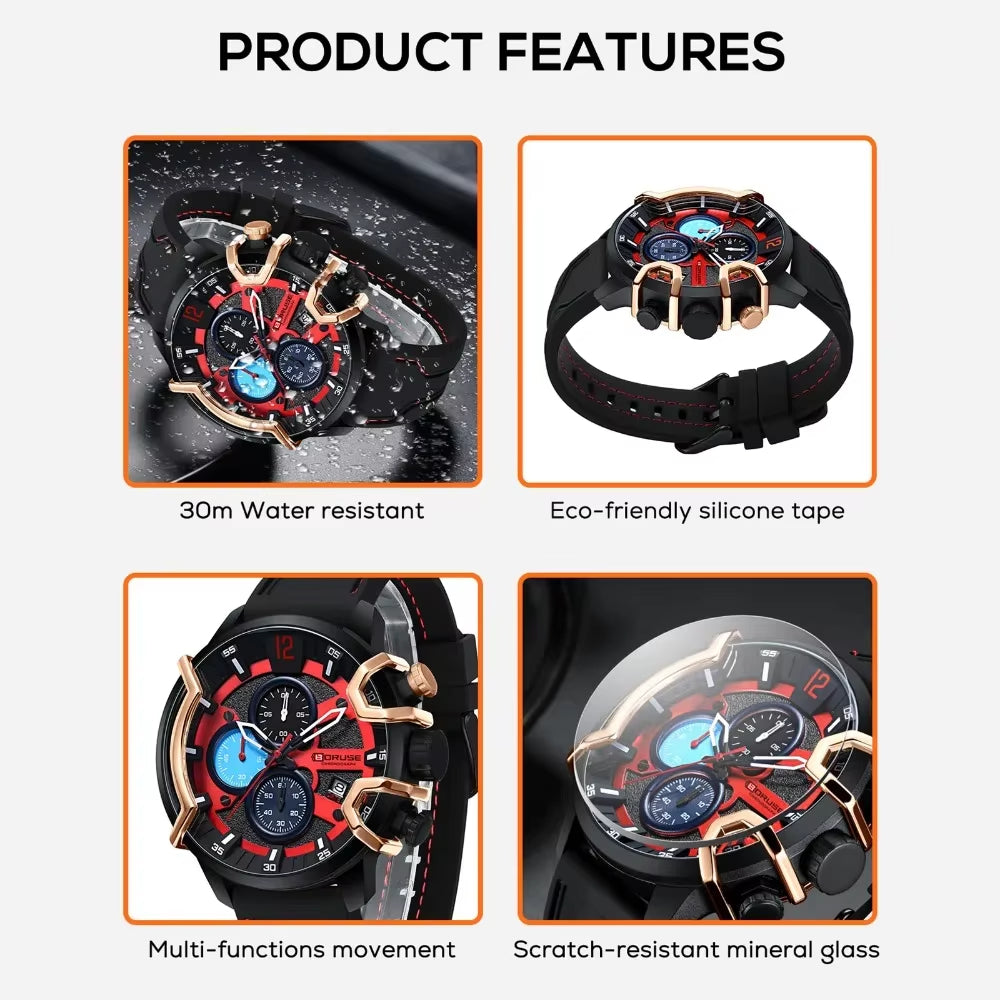 Geef je look een upgrade met dit Quartz Horloge met Zwarte & Rode Siliconen Band – eenvoudig, stijlvol en praktisch.