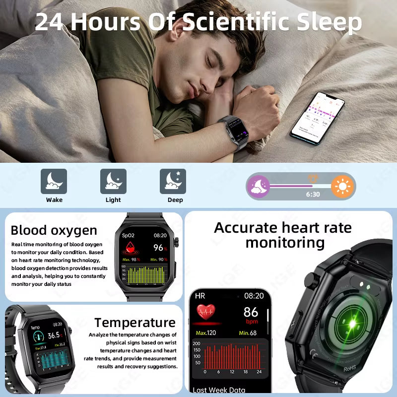 Houd je gezondheid volledig bij met deze Smartwatch ECG + PPG. Met functies voor bloedlipiden, urinezuur, AI-gestuurde diagnostiek, hartmonitoring en lichaamstemperatuur, biedt dit horloge een uitgebreid overzicht van je welzijn. Perfect voor iedereen die gezondheid serieus neemt en inzicht wil in zijn lichaam, direct vanaf de pols.