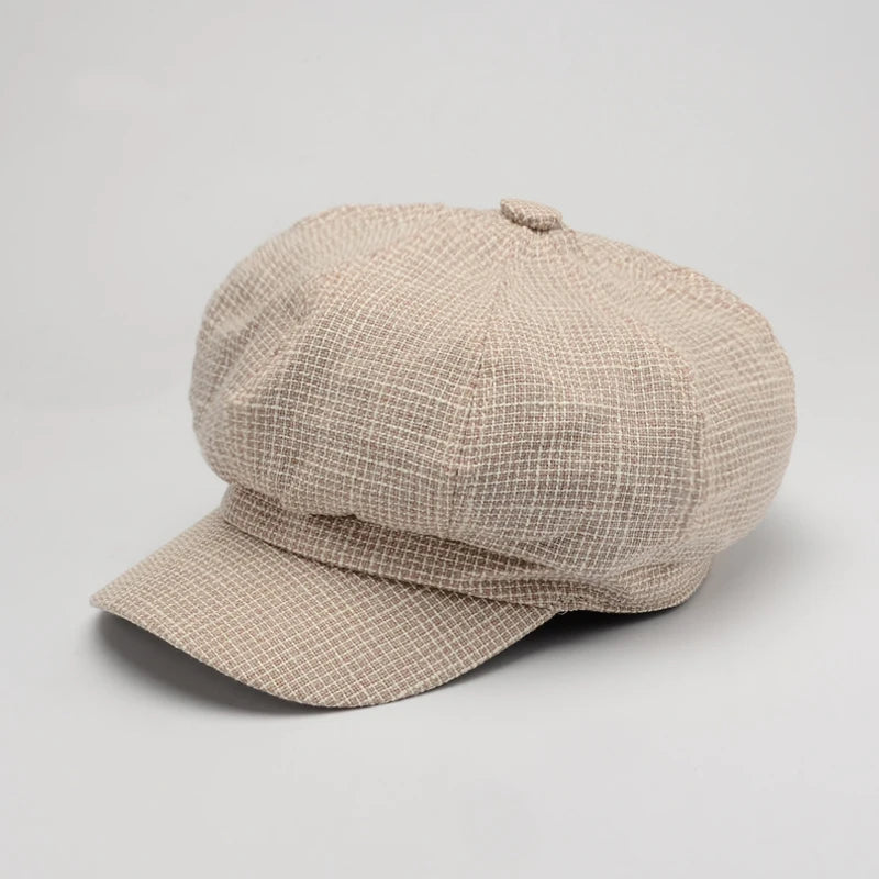 Vintage Plaid Beret Newsboy Cap for Casual Wear