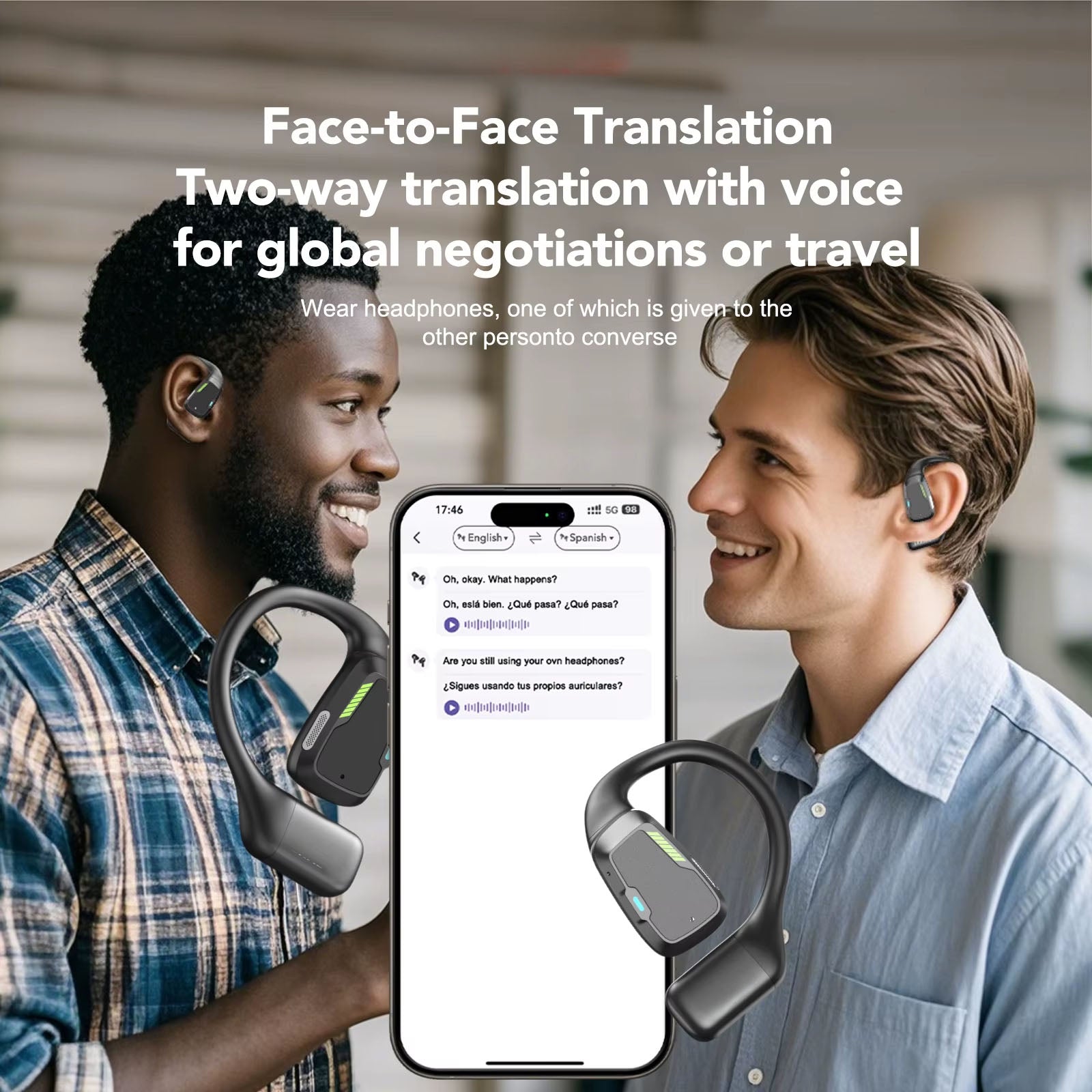 Communicate globally with these XP6 wireless translator earphones — smart, comfortable, and perfect for real-time translation and audio enjoyment.