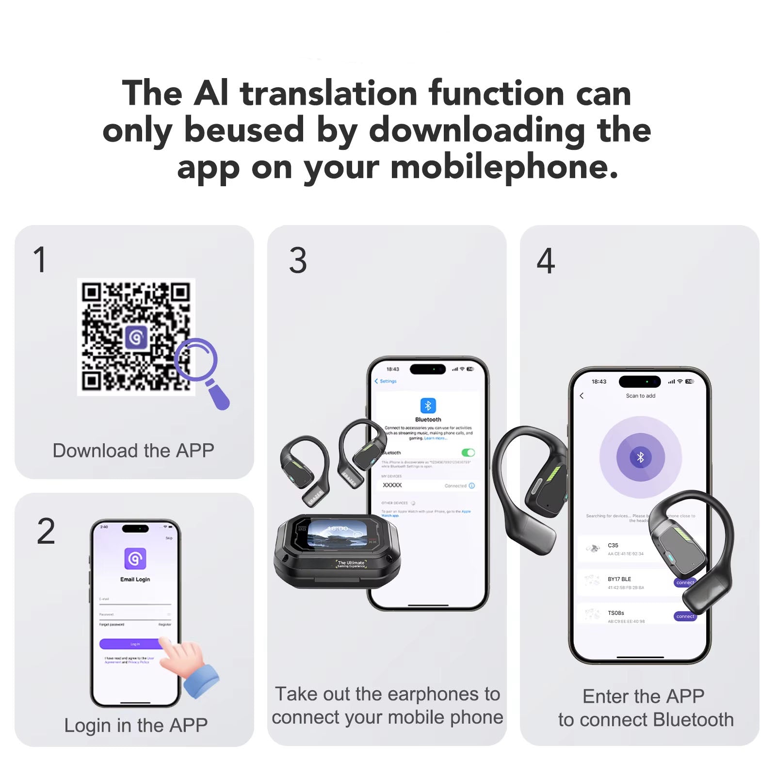 Communicate seamlessly across languages with these XP6 wireless translator earphones. Featuring AI-powered translation, Bluetooth connectivity, and a DIY equalizer, they offer clear audio and personalized sound for travel, work, or learning.